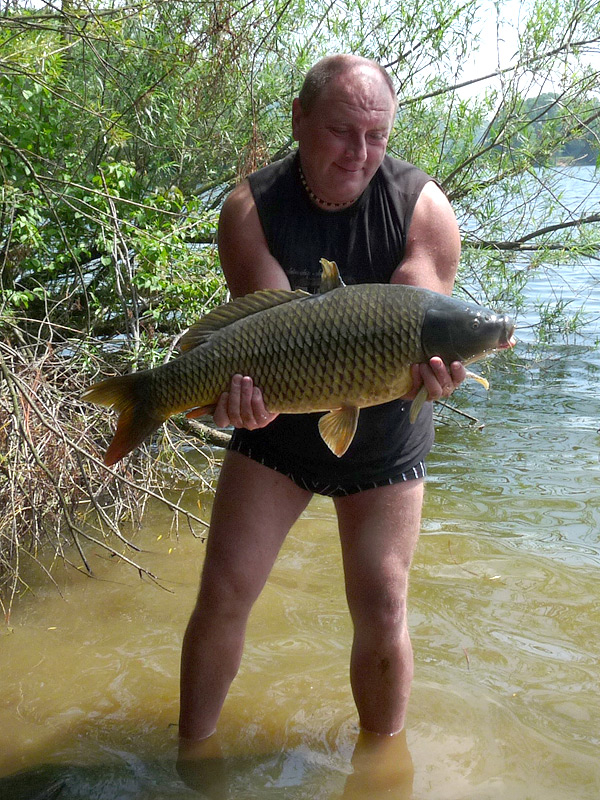Na cívku zase dostanu desítky metrů vlasce, ale rybu k hladině nezvednu. Jak se ji tahem snažím dostat vzhůru, splaší se a najede mezi větve v těsné blízkosti břehů. Převaluje se v samém kraji asi čtyřicet metrů ode mě. Zbývá mi jediné! Má osvědčená lest! Zabrodím se co možná nejdál do vody a potápím prut do hlubiny. Nad hladinou zůstává jen naviják s rukojetí. V tuto chvíli pouze držím rybu v tahu vlasce a nesnažím se jí pumpovat. Cítím v ruce důrazné, ale klidnější pohyby. Vydržet, vydržet, vydržet… Kapr se mele na místě dobrých pět minut. Zdá se, že se mu zatím nepodařilo namotat vlasec do větví. Hrozí tu ještě jedno riziko – určitě bude hledat spásu únikem do hlubiny a tam mu stačí přejet vlascem přes slávkové pole. Ostré schránky škebliček přeříznou vlasec okamžitě!