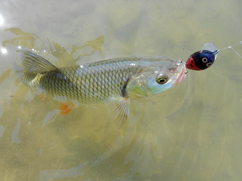 Jeden den, kdy bylo horko na padnutí, jsem se prodíral k vodě přes vysokou trávu. Okolo hlavy mi lítali všelijací broučci a mouchy. Ze stébla na stéblo skákali luční koníci, ale nejen to – spousta hmyzu byla i nad hladinou po celé vodní ploše. Z tohoto hmyzího šílenství byly ryby extrémně žravé a voda přímo vřela. Do mých nástrah však udeřilo jen minimum šupinatých zájemců, a když, tak to ještě těch nejmenších. V tom okamžiku mě napadlo, zda v krabičkách nemám něco, co by alespoň trochu napodobovala nějaký druh hmyzu. Našel jsem jen pár kousků, které jsem si kdysi vlastnoručně vyrobil. Snad zafungují...