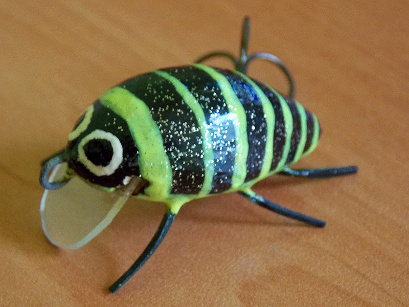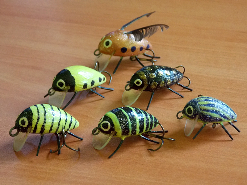 Hned o pár dní později jsem si koupil dva druhy wobblerů napodobující hmyz. Byli to výrobky značky Kovmasters. První typ byl – Wasp - imitace vosy, včely či sršně a druhý model Beetle – brouk, konkrétně napodobenina chrousta. V obou případech se jednalo o plovoucí wobblery, kteří se dají vést buď těsně pod hladinou, nebo přímo na ní.