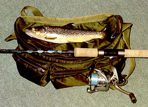 Ovšem s mušákem to byla opět tragedie, zatímco okolní vláčkaři zvláště na peří tahali rybu za rybou, já byl kyselej jak šťovík. Prostě nic, jakmile jsem hodil mezi sbírající ryby, jako bych tam hodil granát – nic, nakonec se mi podařilo vyloženě vymodlit si jednoho sivenka 15 cm a to byl konec mé eskapády 16.4.03. Za to 17.4.03 jsem po třech náhozech na Ohři 12 P zlomil vláčák, takže taky super. 18.4.03 moucha na Střele 1 – opět bomba – asi 3 proudníci kolem 15 cm. První slušný lov přišel až kolem 20.4. na malém potoce. Nevím jak vy, ale pro mne z toho vyplývá nic nezkoušet, neroztěkávat se způsoby lovu a hlavně si neberte pokud možno mobil. Pokud tedy nemáte malé dítě jako já a jenom jedno auto v rodině. Co mne tedy asi čeká letos? No to nevím, ale vím jistě, že v autě budu mít jenom jeden prut a nedej bože, že ho zlomím.