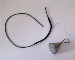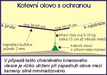 - pomocí lepící pásky jej co nejpevněji přichytíme k bužírce, do vzniklého očka přichytíme pomocí vlasce kotevní olovo a vše je hotovo.