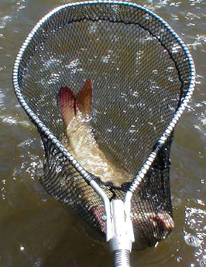 Po nějaké chvíli se to přece jen podařilo a na mě z vody vykoukla úctyhodná parma, ale když jsem ji chtěl vylovit, přišlo nemilé překvapení – podběrák nebyl k nalezení – zůstal v autě. Ale ryba to byla natolik krásná, že jsem se nenechal dlouho přemlouvat k jejímu vylovení rukou. Byla ovšem tak daleko ode mne, že jsem na ni nedosáhl, a proto moje ruka nejdříve směřovala k vlasci, abych si ji kousek přitáhl a dosáhl na ni. Vlasec jsem ke své smůle chytil. V okamžiku, kdy jsem se vlasce dotknul, parma se zbavila háčku a ten se zaryl hluboko do mého pravého prostředníčku.