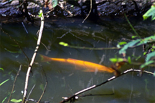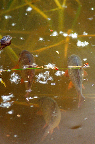 zlatí karásci při své odpolední odpočinkové pouti tůní...