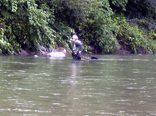 I přes velkou únavu každý ze závodníků po očku pokukoval, jak to vypadá s Bečvou. Celá řada z nich se do naší Bečvy zamilovala a strašně si přáli si v ní ulovit aspoň jednoho "tlouštíka". V neděli ráno Bečva ukázala svoji vlídnou tvář a odvděčila se pořadatelům za práci a snahu a závodníkům za to, že za ní přijeli někteří přes celou republiku. Obrovské množství nové síly a chuti vlila do závodníků v neděli časně ráno informace, že je Bečva chytatelná a že se tedy bude závodit na řece. Nic nevadilo, že se museli prodírat téměř neprostupným pralesem křídlatky na březích Bečvy nebo si zabrodit až po prsa do ještě ne zcela "běžné" Bečvy a chytat tři hodiny bez přestávky a odpočinku na "3 cm chladné vodě".