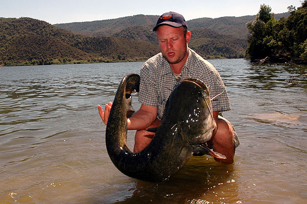 Během odpoledne připravíme komplet bójky a pruty. V noci přichází silná bouře, kdy prožíváme opravdu krušné chvilky. Silný vítr nám několikrát téměř "ukradne" deštník. Ráno nás vítá Ebro naprosto klidnou hladinou. Nastražujeme všechny pruty a věnujeme se lovu nástražních ryb. V mezičase odjíždíme s Ondrou na blackbassy. Stále se však držíme "na dostřel", abychom se v případě záběru stihli vrátit. "Blekoši" koušou a báječně se bavíme. Z příjemného relaxu nás vytrhuje zvuk rolničky. Jediný pohled k našim prutům a vše je jasné. Ondrův táta skáče s Láďou do lodi a jedou zdolávat prvního sumce. Když se vrátíme, je téměř po všem. Sumec není nikterak velký, nicméně necelých 180 cm pro začátek potěší. Během následujících několika hodin dostáváme ještě celkem 13 záběrů. "Výtěžnost" je ovšem zcela tragická. Některé ryby se nepodařilo zaseknout, ale co je horší - polovině z těch zaseklých se podařilo zajet do vázky a tak jsme je utrhli. A to je to nejhorší co se může stát. Montáž s několika trojháčky se totiž může stát sumcovi osudnou. Večer diskutujeme, jak dál, protože tahle tedy rozhodně ne!
