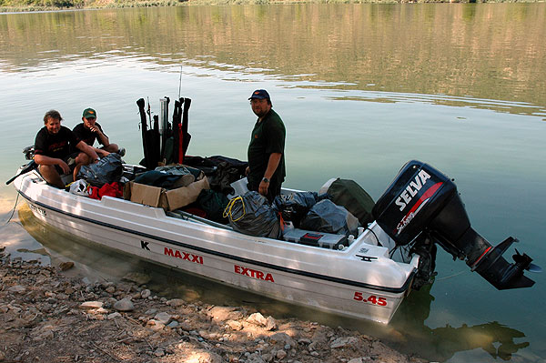 Do konce výpravy ještě dvakrát měníme naše stanoviště. To první, u fíkovníků, se nám sice líbilo, sumcům také, ale stromů je zde příliš a již nehodláme pohřbívat další ryby. Ať však jedeme kam jedeme, stromy jsou téměř všude. Po dlouhém hledání zkoušíme jeden den chytat kousek pod cementárnou, ale po dvou dnech to vzdáváme a stěhujeme se k Pepovi Hupákovi a chytáme přímo z kempu. Ani zde to však není bez stromů a jediný sumec do nich nekompromisně zajíždí.