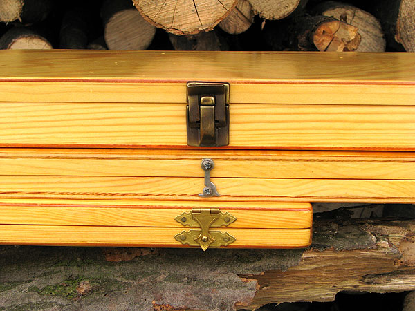 Dalším krokem je lakování krabice. To nebudu příliš rozebírat, je hlavně nutné postupovat tak, aby se nikde neslil lak do kapek. Pokud se tak přesto stane, lze tyto „kazy" odstranit smirkem a opětovným nátěrem. Podle kvality laku budou stačit dvě nebo tři vrstvy nátěru a krabice bude dostatečně chráněna.