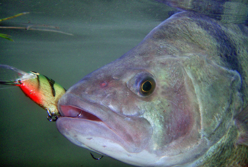 Super nástrahou na velké okouny je hlubokopotápivý wobler. Stačí nahodit těsně ke skále, nástrahu rychle zaříznout pod hladinu a táhnout ji podél kamenného převisu. Když ucítím, že lopatka klopýtá po skále, zvednu špičku prutu a zpomalím navíjení - wobler začne stoupat nad závadu. V tomto okamžiku často pocítím lehké drcnutí do nástrahy. Stačí je lehce přiseknout a už se okoun veze…